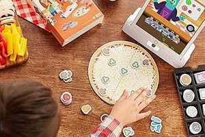 Bild: OsmoIn einer Mischung aus App und echten Spielzeug leiten Kinder eine Pizzeria. Wie bei allen Osmo-Games wird das Tablet bei "Pizza Co." in einen Klemmfuß gesteckt und dann mit echtem Spielzeug hantiert.