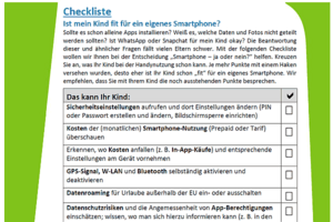 Bei der Beantwortung dieser Frage kann eine Checkliste helfen, die von EU-Initiative "klicksafe.de" erstellt wurde und zum Download bereitsteht. Mit ihr können Eltern klären, wie es um die Medienkompetenz ihres Kindes steht. Kann es beispielsweise GPS und WLAN aktivieren und deaktivieren? Weiß es, wo Kostenfallen lauern? Hat es bereits ein Verständnis dafür entwickelt, Apps kritisch zu beurteilen? Kann es überprüfen, welche Zugänge sie verlangen? Weiß das Kind, welche Inhalte man teilen darf und bei welchen das kritisch ist? Kann es verdeckte Werbung erkennen?