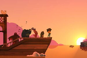 Screenshot aus dem Spiel "Spiritfarer"; Bild: Thunder Lotus GamesIn "Spiritfarer" begleiten wir die Fährfrau Stella, die ihr Schiff in ein schwimmendes Dorf ausbaut und Tiere ins Jenseits geleitet. Eine ungewöhnliche Spielidee mit wunderschönen Grafiken!