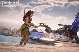Screenshot aus dem Spiel "Horizon Forbidden West"; Bild: SonyDie hartgesottene Maschinenjägerin Aloy aus dem 31. Jahrhundert will eine tödliche Seuche bekämpfen und die Welt retten – im Spiel "Horizon Forbidden West". Für ältere Kinder und Erwachsene.