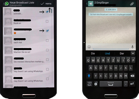 Wenn Sie ein Foto als Status erstellen wollen, wählen Sie ein Bild aus ihrer Galerie aus oder machen Sie direkt ein neues Foto. Anschließend können Sie einstellen, wer den Status sehen darf.