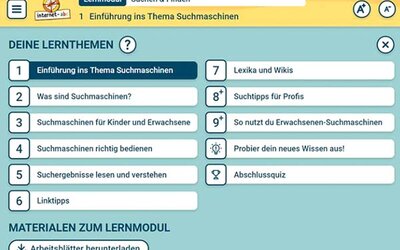 Die Lernmodule zeigen auf, wie Computer funktionieren und zu bedienen sind, wie man Informationen im Internet findet, welche Gefahren es im Internet gibt und worauf Kinder beim Kommunizieren im Netz achten sollten (WhatsApp, Chats in Online-Spielen usw.). In vier Themenbereichen finden sich insgesamt 15 Module, die sich die Kinder auch vorlesen lassen können. Das Erlernte können die Kinder gleich in unterschiedlichen Aufgaben und Übungen testen.