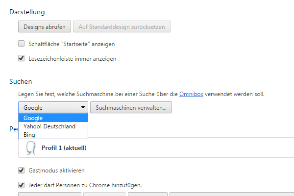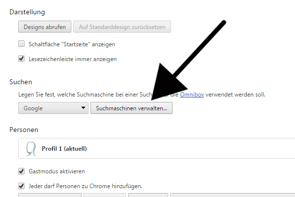 4. über "Suchmaschinen verwalten" weitere Suchmaschinen aufrufen.