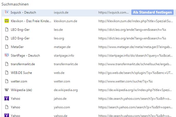5. Aus der Liste eine Suchmaschine "als Standard festlegen".