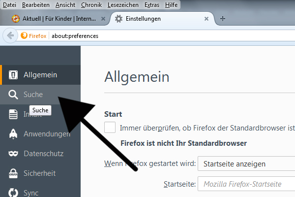 (Unten können auch noch weitere Suchmaschinen hinzugefügt werden.)