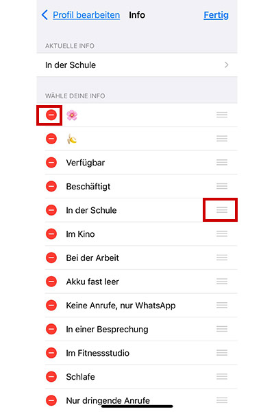 3. Info: Reihenfolge ändern, löschen oder selbst bearbeiten.