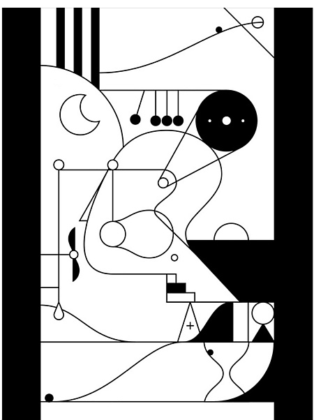 Eine Kugel muss sich ihren Weg zum Ziel bahnen. Kennen wir! Was wir nicht kennen: Die Bahn besteht aus einer sehr künstlerischen und ästhetischen Grafik in schwarz-weiß. Es gibt keine Hinweise oder Erklärungen.