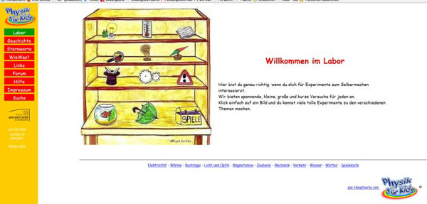 Vor fünfzehn Jahren haben Lehramtsstudierenden und ein Physikprofessor der Uni Oldenburg das Projekt "Physik für Kids" gestartet - und noch immer nimmt die Website die Kinder mit bei ihren ersten Schritten in die spannende und schwierige Welt der Physik: ganz ohne Schnickschnack, aber mit verständlichen Erklärungen, durchdachten Experimentierideen, mit Informationen über berühmte Physiker und Entdeckungen und mit weiterführenden Links.
