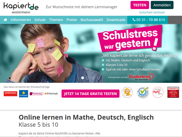 kapiert.de ist eine umfangreiche Lernplattform für Schülerinnen und Schüler ab Klasse 5. Sie verspricht besonders für diejenigen, die mit dem passenden Schulbuch (Westermann Verlagsgruppe) arbeiten, einen großen Lernzugewinn.