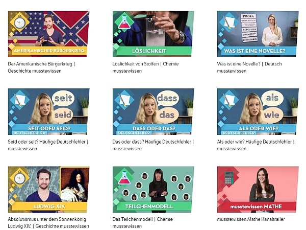 Zu jedem Schulfach wird bei "musstewissen" pro Woche auf YouTube jeweils ein Lernvideo veröffentlicht. Das Angebot soll kontinuierlich ausgebaut werden. Wer also noch Schulwissen zu den angebotenen Themen braucht, der ist hier auf Dauer gut aufgehoben.