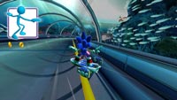 In diesem Spiel wird Sonic jedoch nicht durch einen Controller gesteuert, sondern verlangt tatsächlich "vollen Körpereinsatz" vom Spieler. Möglich wird dies durch die noch relativ neue Kinect-Hardware, die an die XBOX 360 angeschlossen wird und die Körperbewegungen von bis zu zwei Spielern gleichzeitig erfassen kann. Und so steuert man seien Spielfigur durch achterbahnähnliche Strecken, sammelt Extras ein, erhält dadurch Spezialfähigkeiten oder setzt manche Dinge ein, um den Mitspieler auf Abstand zu halten.