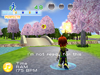 Die zunächst noch völlig leere virtuelle Welt Rhythm Island füllt sich immer mehr auf, je mehr Schritte der Inselläufer absolviert. Dabei sammelt er etwas umständlich Chips für neue Songs ein und schaltet Items zum Hören und Sehen beim Spaziergang frei. Doch bevor der Heimsportler Gebäude und Parks bestaunen darf, läuft es sich zunächst relativ trostlos. Auch die drei Minispiele, bei denen kleine Faultiere mit dem Hammer erwischt werden müssen, fallen recht ähnlich aus. Aber je länger der Home-Sportler durchhält, desto mehr Leben kommt in die Bude. Immer mehr Gegenstände und Personen erscheinen auf dem Screen. Dabei kann es schon passieren, dass zum Freischalten der Gegenstände länger als nötig gelaufen wird. Und das ist doch erstmal nicht so schlecht.
