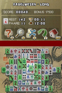 Das Ziel von Mahjong ist bekannt: Auf den Spielbrettern befinden sich bis zu 144 Steine, die zu einer Figur angeordnet sind. Es gilt, Spielsteine paarweise zuzuordnen und damit abzubauen. Das hört sich aber einfacher an als es ist. Denn zwei passende Steine verschwinden nur dann, wenn keiner von ihnen verdeckt ist und auch kein anderer Stein auf der gleichen Ebene an der rechten oder linken Seite anliegt. Gespielt wird solange, bis keine Steine mehr da sind - dann hat man gewonnen. Pech nur, wenn noch Steine da sind und keine weiteren Paare gebildet werden können ...