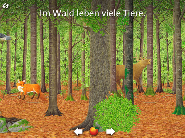 In sechs Kapiteln wird der Wald als Lebensraum für Pflanzen und Tiere vorgestellt. Auf spielerische Weise befassen sich die Kinder mit Bäumen und ihren jeweiligen Blättern, sie suchen zwischen den Bäumen nach Tieren und erfahren, was ein Förster so macht. Darüber hinaus lernen sie Pflanzen aus dem Wald kennen. Pilze werden mit einem Körbchen gesucht. Mit einem Dreh auf dem Globus geht es dann zu Wäldern in anderen Erdteilen. Insgesamt eine kleine, aber feine App. Aus der selben Reihe gibt es noch "Der Marienkäfer".