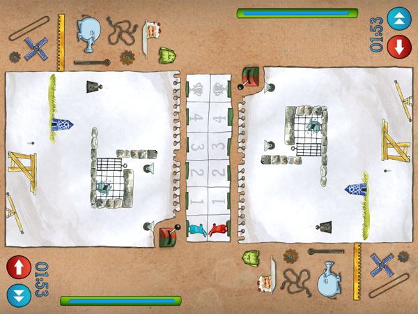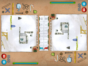 Und wer schon ein bisschen geübt ist, der kann dann sogar in den Wettkampfring steigen: Im Duell bewältigen zwei Spieler eine identische Aufgabe. Dazu wird der Bildschirm kurzerhand geteilt und die beiden Tüftler sitzen sich gegenüber - wie an einem traditionellen Spielbrett. Hier zeigt sich übrigens die Stärke von Tablet-PCs, denn weder Desktop-Computer noch Laptop sind so genial einsetzbar. Gewonnen hat, wer Petterssons Erfindung als Erster ans Laufen bringt.