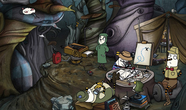 "The Inner World" kommt aus Deutschland, ist handgezeichnet und spart auch bei der Verpackung nicht. Die ist nicht nur hochwertig und schön aufgemacht, sondern liefert darüber hinaus Postkarten, eine Asposia-Enzyklopädie und eine Häkelanleitung für Hack, die Taube.
