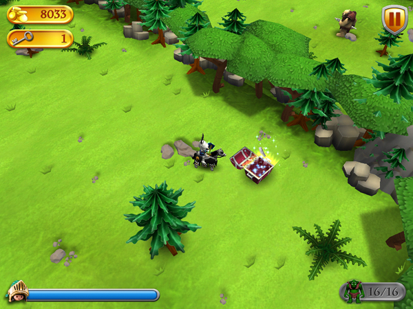 Dabei wird der Ritter mit dem Finger gesteuert: Ein Tipp und er läuft dorthin. Mit dem Schwert zersäbelt er Büsche und Schatzkisten. Darin verstecken sich Münzen, Heiltränke und möglicherweise der gesuchte Schlüssel.