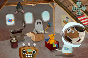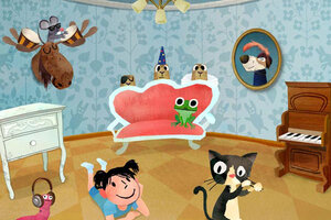 Ein Erdmännchenchor trällert hinter dem Sofa im Musikzimmer, während die Maus auf dem Elchgeweih trommelt und Katze auf ihren Barthaaren geigt. Dazu singt und pfeift ein kleines Mädchen eine schöne Melodie. Immer wieder sorgen witzige Details für Überraschungen: Hier zum Beispiel wird der Ton gedämpft, wenn der Wurm sich einen Kopfhörer aufsetzt.