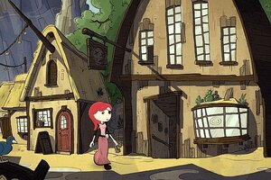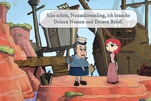 Sie ist eine Piratin: Naja, daran lassen ja auch die Piratenklappe, das eine grüne Auge und die knallroten Haare wohl keinen Zweifel. Trotzdem muss Nelly Cootalot zu Beginn des Spiels auf einem dämlichen Postschiff schuften und Briefe sortieren. Klar, dass sie dazu keine Lust hat.
