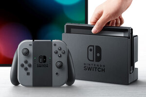 Der Name ist Programm, denn "Switch" heißt wechseln: Die Konsole lässt sich umbauen. Mit ihr spielt jeder sein Lieblingsspiel überall: am Fernseher, am Tisch und sogar auf Reisen. Die Switch besteht aus einem schmalen und schicken Tablet, einer Switch Station mit Anschluss zum Fernseher, zwei Controllern namens Joy-Cons und einer Halterung.