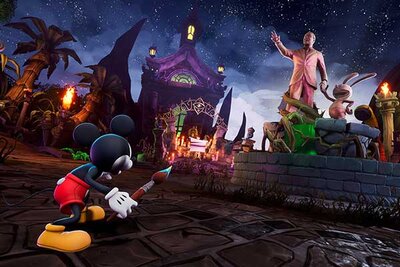 In “Disney Epic Mickey: Rebrushed" können Kinder in die Rolle von Micky Maus schlüpfen, der aus Versehen eine fast fertige Welt durch den Einsatz von Farbverdünner zerstört.
