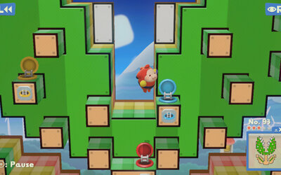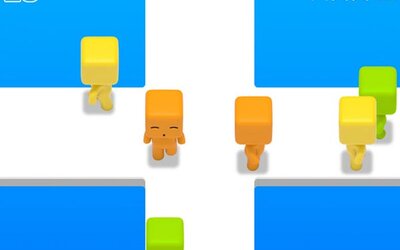 Die Kinder von Pullbloxpark, kleine bunte Figuren, sind gefangen in großen Pixelblöcken - und der Spielheld Mallo muss sie retten: durch geschicktes Verschieben der Blöcke.