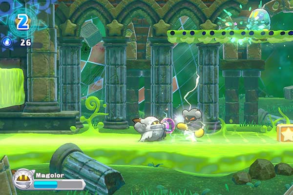 Ihre Suche führt sie durch Wälder, Wüsten, Schnee und Eis, bis sie genug Teile gefunden haben. Außerdem gibt es die Möglichkeit, das Lustige Magoland zu besuchen, einen Vergnügungspark, den der Fremde Magolor gebaut hat und in dem insgesamt zehn Minispiele warten. Der Mehrspielermodus ermöglicht es bis zu vier Personen gleichzeitig zu spielen, was ebenfalls sehr positiv ist.