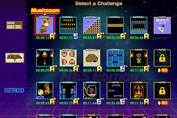 Aus insgesamt 13 älteren Nintendo-Klassikern bietet das Spiel mit 150 Leveln eine Sammlung an Herausforderungen, die Zeit zu schlagen.