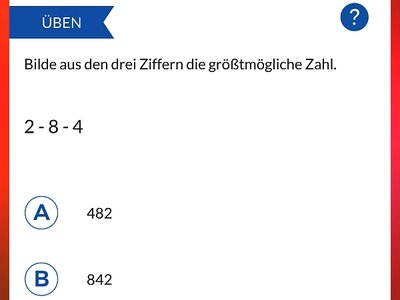 Jeder thematische Schwerpunkt besteht zunächst aus einem Übungsteil wie etwa "Mit ganzen Zahlen umgehen", aber auch Addition, Subtraktion, Multiplikation und Division. Insgesamt wartet die App mit rund 20 Schwerpunkten auf. Danach erfolgt das Testen. Hierzu weist eine Fortschrittsanzeige den gegenwärtigen Lernstand auf. Der sogenannte Spickzettel liefert das Regelwerk zum Nachlesen.