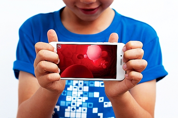 Wir wissen, dass das Blut im Körper pulsiert und das Herz schlägt. Nun sind diese Vorgänge sichtbar. Um diese Abläufe anschaulich zu machen, hat sich die britische Firma "Curiscope" etwas Besonderes ausgedacht: Ein T-Shirt mit speziellem Material-Aufdruck. Ein Kind zieht das Shirt an, ein anderes scannt es mit der zugehörigen App ein.