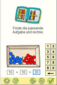 Zahlen, Grundrechenarten, Räume, Formen, Größen und Daten – von einfachen Rechnungen bis zu kniffligen Aufgaben reicht das Angebot. Die Lösungen müssen die Schüler auf unterschiedliche Art eingeben: Mal schießen sie den Ball ins richtige Tor, mal verbinden sie die passenden Kärtchen oder sie pusten kräftig in das Mikrofon der Konsole. Ansprechende, kindgerechte Mathesoftware, die zum Lernen motiviert.