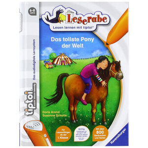Verfolgen können die kleinen (Erst)Leserinnen die Geschichte, indem sie sich den Text vorlesen lassen, ihn selber lesen oder mit dem tiptoi – dem orangefarbenen Stift mit Lautsprecher – auf (textliche) Entdeckungsreise gehen. Der Stift liest zwar auch den gesamten Text vor, beschränkt sich aber auf Wunsch auch auf ausgewählte schwierige oder besondere Wörter. Die werden dann vom sympathischen Leseraben mit weiteren Erklärungen versehen.