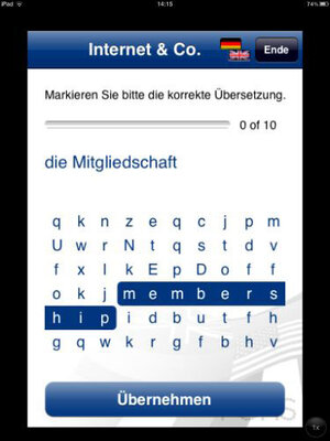 Mit dem Vokabeltraining, das jederzeit zur Hand ist, geht das beinahe perfekt: Mit Rubbelkarte, Textmarker, Kombinator, Buchstabensalat oder Lexitext kann man zwischendurch kleine Trainingseinheiten einlegen, und zwar in 17 verschiedenen Sprachen, darunter sogar Latein.
