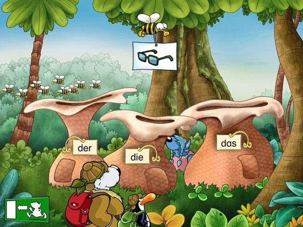 Eisbär Emil und das Pinguinmädchen Pauline hat es diesmal in den Dschungel verschlagen. Hier warten fünf Dschungelkobolde in ihren Nestern auf die Spieler. Jeder der Kobolde hat ein anders kleines Lernspiel im Angebot. Da geht es einmal darum, sinnvolle Buchstabenfolgen zu erkennen und die Quatschwörter wegzustreichen oder die Froschgesänge den richtigen Buchstabenlauten zuzuordnen. Buchstaben werden nachgezeichnet und dieser Anlaut muss dann dem passenden Begriff zugeordnet werden. Heißt es die oder der Tür? Der oder das Telefon? Nur wenn der Artikel richtig zugeordnet wird, wird der Gegenstand von der fleischfressenden Pflanze verschlungen.