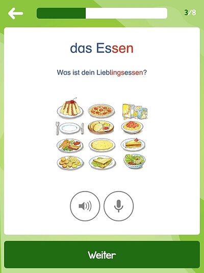 Mit dieser kostenlosen App können Kinder, die mit einer anderen Muttersprache aufgewachsen sind, den passenden deutschen Wortschatz lernen. Dazu gibt es verschiedene Kategorien, wie etwa Schule, Feste, Jahreszeiten, Familie oder Hobbys.