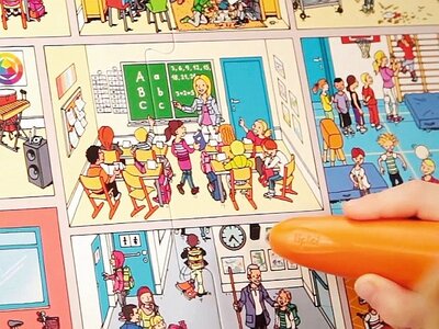 Der Titel ist Programm. Hier wird mit digitaler Unterstützung durch den tiptoi-Stift der komplette Schulalltag simuliert und interaktiv nachgespielt. Vom Unterricht in verschiedenen Fächern über die Pausen und den Mensabesuch bis zur Nachmittagsbetreuung.