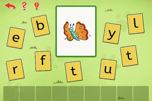 Tom liest die englische Bezeichnung vor und anschließend müssen Bild und gesprochenes Wort zusammenbracht werden. Schließlich geht es noch um die Schreibweise. Zunächst erscheint das korrekte Wort, dann werden die Buchstaben durcheinandergewirbelt.