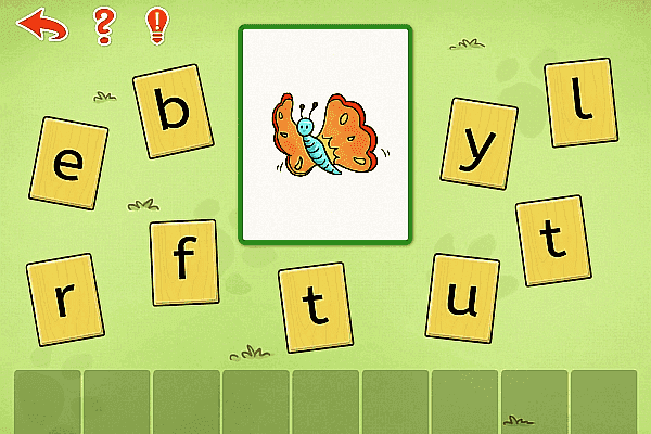 Im ersten Level sind die Schatten der einzelnen Buchstaben des jeweiligen Wortes noch gut zu erkennen. Im zweiten Level fehlt diese Hilfestellung. Allerdings müssen nicht alle Buchstaben richtig zugeordnet werden, einige bleiben stehen. Und im dritten Level schließlich gibt es gar keine optische Hilfestellung mehr.