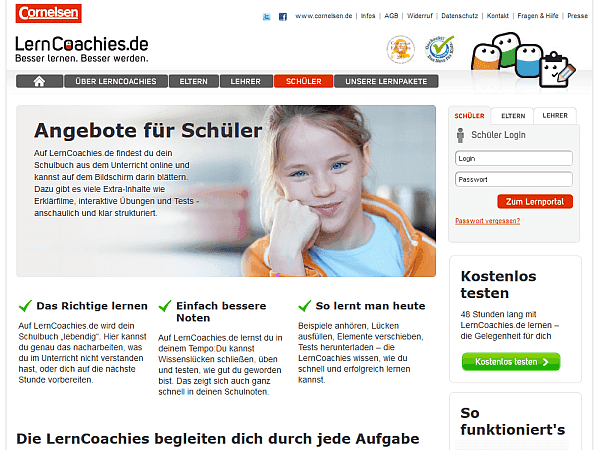 Hinweis: Gute Lernportale werden kontinuierlich weiter entwickelt: Mit Erscheinungsjahr ist der Entwicklungsstand des Lernportals in dem jeweiligen Jahr gemeint, also auch der Zeitpunkt unserer Prüfung.