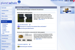 Für den Unterricht insbesondere in den naturwissenschaftlichen Fächern lohnt sich immer wieder ein Blick in das aufgelistete Angebot, das zusätzlich mit Fernsehbeiträgen, Beschreibungen oder mit einem umfangreichen Wissenspool angereichert ist. Die Simulationen reichen vom Akustik-Labor über den Blitzsimulator und den Gezeiten-Simulator bis zur Windkraftanlage.