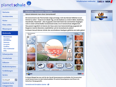 Für den Unterricht insbesondere in den naturwissenschaftlichen Fächern lohnt sich immer wieder ein Blick in das aufgelistete Angebot, das zusätzlich mit Fernsehbeiträgen, Beschreibungen oder mit einem umfangreichen Wissenspool angereichert ist. Die Simulationen reichen vom Akustik-Labor über den Blitzsimulator und den Gezeiten-Simulator bis zur Windkraftanlage.