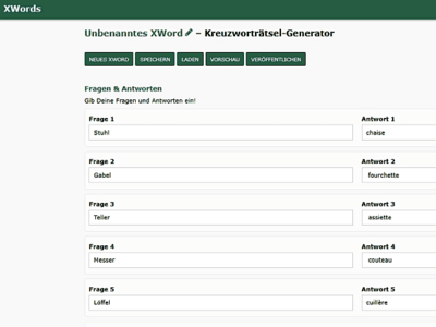Mit diesem Kreuzworträtsel-Generator können genau solche spezifischen Kreuzworträtsel erstellt werden. Sie sind dann zum spielerischen Lernen im Unterricht oder für die Hausaufgabenbetreuung geeignet.