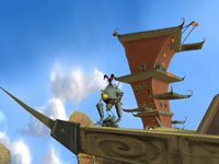 Und so klettern, hüpfen oder rennen die drei durch die schön gestaltete Spielwelt, überwinden Hindernisse oder lösen Rätsel. Die Gegner - roboterhaft anmutende Fantasy-Gestalten - müssen aber auch direkt bekämpft werden, um schließlich die Erde zu retten.