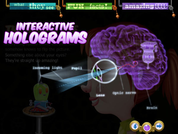 Bobo selbst ist dabei ein knuffiger Roboter auf Rädern, der Kindern die geheimnisvolle Welt des Lichts anschaulich erklären will. Hier geht es unter anderem um die Sonne, gefährliche Blitze und das Spektrum der Farben. Das Tolle: Überall gibt es Schalter und Rollos mit Erklärungen, Animationen und Videos. Etwa, wenn anschaulich gezeigt wird, wie Bilder über das Auge in unserem Gehirn umgesetzt werden. Oder aber wenn die Kinder bei Lichtstrahlen so lange die Spiegel verstellen können, bis ein gewünschter Effekt eintrifft.