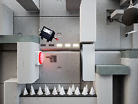 Damit das Spiel seine Spannung behält, erhöht sich der Schwierigkeitsgrad von Level zu Level. Indem der Ninja Objekte sammelt, die irgendwo in den Labyrinthen warten, erlernt er allerdings auch neue Fähigkeiten. Zum Beispiel schrumpft er sich bei Bedarf auf Mini-Größe und passt dann durch besonders enge Gänge. Oder er bleibt eine Zeitlang per Abwehrschild vor allen Angreifern geschützt. Ein kleiner Abstecher zur Toilette bewirkt manchmal, dass sich die Schwerkraft verändert. In solchen Situationen kommt der spezielle Humor des Spiels zur Geltung. Auch die Bossgegner, die jeweils am Ende der fünf Spielwelten mit den Hufen scharren, spiegeln den verschmitzen Charme des ganzen Games wider. Als garstig-niedliche Labor-Verteidiger gibt es hier kantige Vögel, Hunde und anderes Getier im Robo-Look.