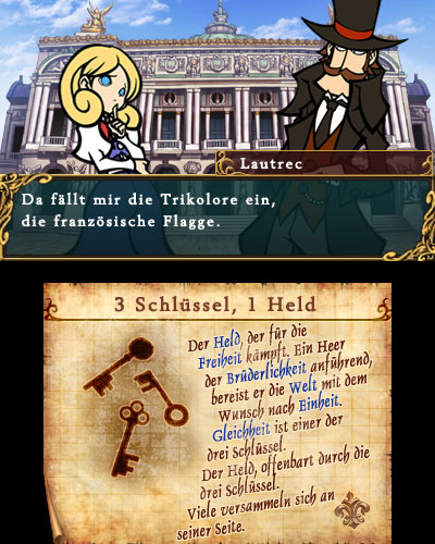 Denn die Geschichte um geheimnisvolle Katakomben und den Schatz von Louis IVX. nimmt sich nicht nur reichlich Zeit, sondern gibt sich auch dramaturgisch außerordentlich viel Mühe. Lautrec ist aber kein britischer Nobelschnösel wie Layton, sondern eher ein aufbrausender Franzose mit den Allüren eines Indiana Jones. Zunächst muss der Spieler Paris durchschreiten, um den Eingang zu den Katakomben zu finden. Dabei lernt er durchaus etwas zur Historie der französischen Vergangenheit.