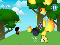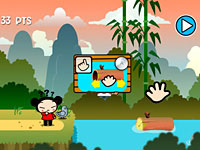 Zwar wird mit der Wiimote gesteuert, aber vor jeder Aktion hält der Spieler das ganze Geschehen an, um sich das entsprechende Werkzeug zu schnappen. Das Handsymbol dient dem Ergreifen von Gegenständen, das Schwert jagt die Ninjas in die Flucht und zerlegt lästige Bambuspflanzen. Und ein Fächer löscht Feuer und vertreibt nebulöses Gewölk. Dem Genre üblich wird gesprungen, gehangelt und ausgewichen. Affen greifen Pucca an, und auch die Spinnen führen nichts Gutes im Schilde.