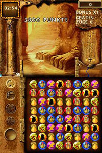 In den ersten harmlosen Levels können sich die Spieler noch "warmlaufen", um sich anschließend den wachsenden Anforderungen stellen zu können. Zunächst einmal müssen auf einem Spielfeld mit 64 Spielsteinen in verschiedenen Farben und mit unterschiedlichen Symbolen immer zwei so vertauscht werden, dass eine Reihe aus mindestens drei identischen Symbolen entsteht. Die verschwinden dann im Nirwana und werden durch neue herunterfallende Steine ersetzt. Mit ein wenig Glück bilden sich dabei neue Reihen, die den Punktestand weiter nach oben treiben. Ein Spielprinzip, das vielen Surfen bereits aus ähnlichen Spielen im Internet bekannt sein dürfte und eine Herausforderung, die sich relativ schnell erfolgreich absolvieren lässt.