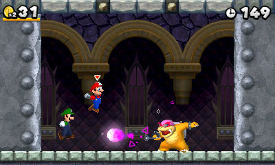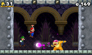 Mario hetzt natürlich zunächst durch sechs mögliche Welten: Er rennt, klettert, hangelt, taucht, schwebt, flattert, fliegt und muss sich mit einer Reihe Gegnern auseinandersetzen, die wir alle schon wie gute Bekannte kennen: Die watschelnden Pilze, die patroullierenden Schildkröten, die schnappenden Fleischfresserpflanzen, die fliegenden Fische, die bösen Geister und die fiesen Feuerbälle. Und wie stets geht es darum, ihnen auszuweichen oder notfalls den Garaus zu machen. Doch lieber nicht zu schnell, denn manchmal kommt Mario auch nur an höhere Ebenen und an die Geheimverstecke der Riesenmünzen, wenn er zum rechten Zeitpunkt auf einen Kontrahenten hopst und ihn dann als Sprungschanze nutzt.