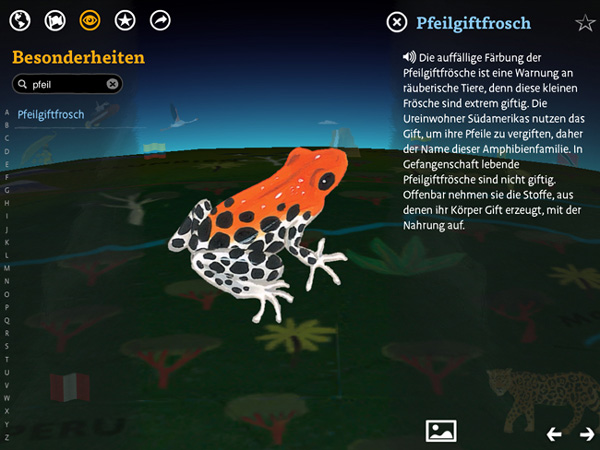 Wenn junge Forscher auf die jeweilige Landesflagge tippen, öffnen sich auf einen Blick die Fakten: Hauptstadt, Sprache, Einwohnerzahl, die gegenwärtige Uhrzeit und das Wetter vor Ort, die höchste Erhebung des Landes und die jeweilige Währung.